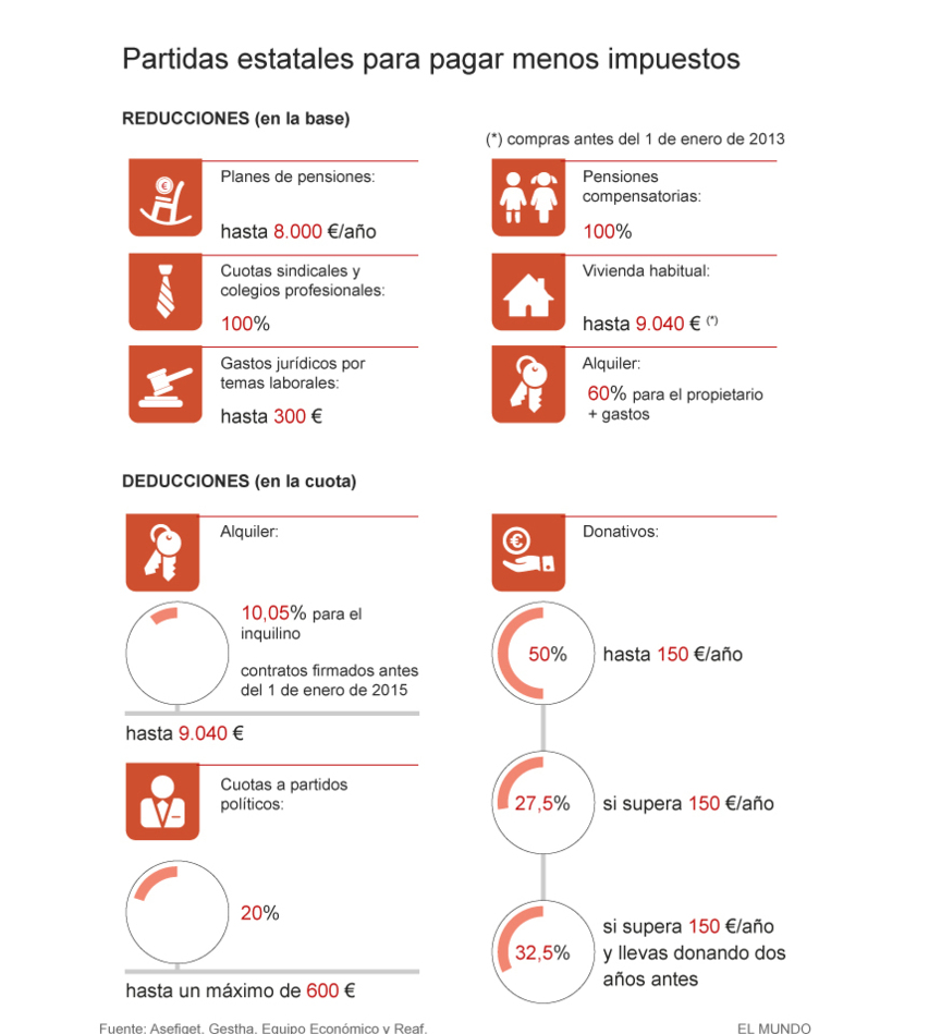 Si bien, en 2015 ha bajado el límite. Lo máximo a reducirse son 8.000 euros al año, con independencia de la edad, o el 30% de los rendimientos netos del trabajo. En lugar de los 10.000 euros para menores de 50 años y los 12.500 para los mayores de esa edad, que había hasta ahora.
